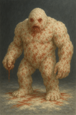 modificaIl golem ha un'aspetto vagamente umano, ma è decisamente più alto e robusto di un normale adulto. Il suo corpo è composto da grumi di farina ancora molle amalgamata con il sangue.